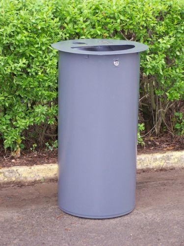 Kosz na śmieci, metalowy przeznaczony do użytku na zewnątrz i we wnętrzach. Zastosowane materiały pozwalają zaliczyć kosze na śmieci typu KBF do wyrobów wandaloodpornych. Zabezpieczenie antykorozyjne gwarantuje bardzo dobrą odpornością na warunki atmosferyczne. Wewnątrz pojemny wkład ocynkowany (opcja). Kosze tego typu wyposażone są w popielniczkę oraz zamknięcie pokrywy.