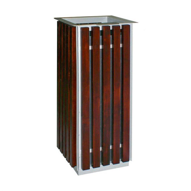 Kosz o konstrukcji metalowej z drewnianym listwami. Spotykany zarówno we wnętrzach jak i na ternach zewnętrznych. Może być eksploatowany jako kosz wolnostojący lub przykręcony do podłoża. Forma kosza pozwala na dostosowanie jego pojemności do potrzeb Klienta.
